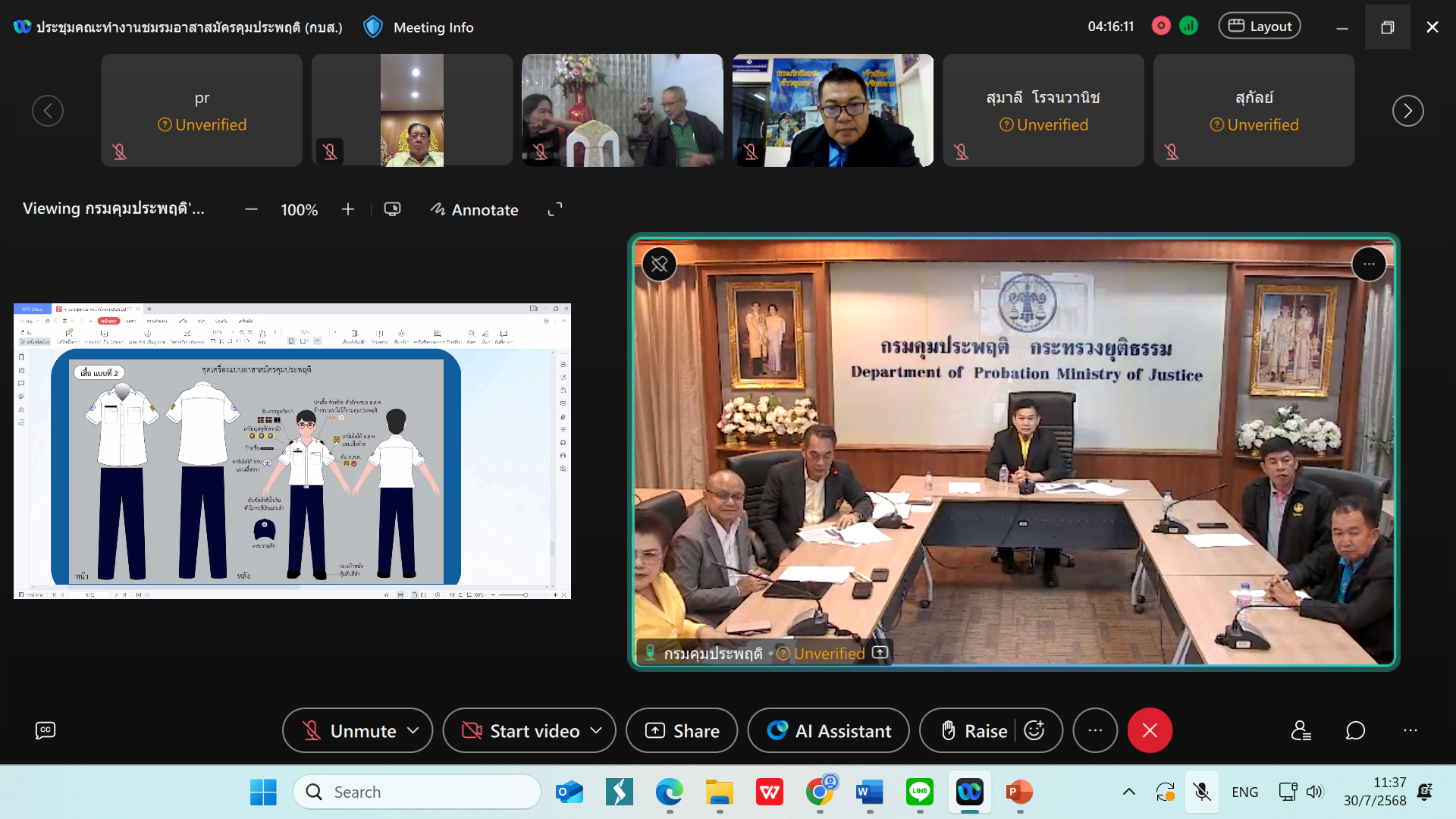 วันนี้ (30 กรกฎาคม 2568) พันตำรวจตรี สุริยา สิงหกมล อธิบดีกรมคุมประพฤติ เข้าร่วมการประชุมคณะกรรมการชมรมอาสาสมัครคุมประพฤติแห่งประเทศไทย ครั้งที่ 1/2568 ผ่านระบบ Video Conference โดยมี นายภูริวัชญ์ ลิขิตสกุลเดช ประธานชมรมอาสาสมัครคุมประพฤติภาค 1 ทำหน้าที่เป็นประธานการประชุม ร่วมด้วย ว่าที่ร้อยเอก กนกศักดิ์ แถวทิม ผู้อำนวยการกองบริหารและส่งเสริมเครือข่าย พร้อมด้วยคณะกรรมการชมรมฯ จากทั่วประเทศ และเจ้าหน้าที่ที่เกี่ยวข้องเข้าร่วม ณ ห้องประชุมชั้น 3 อาคารราชบุรีดิเรกฤทธิ์ ศูนย์ราชการเฉลิมพระเกียรติฯ กรุงเทพมหานคร