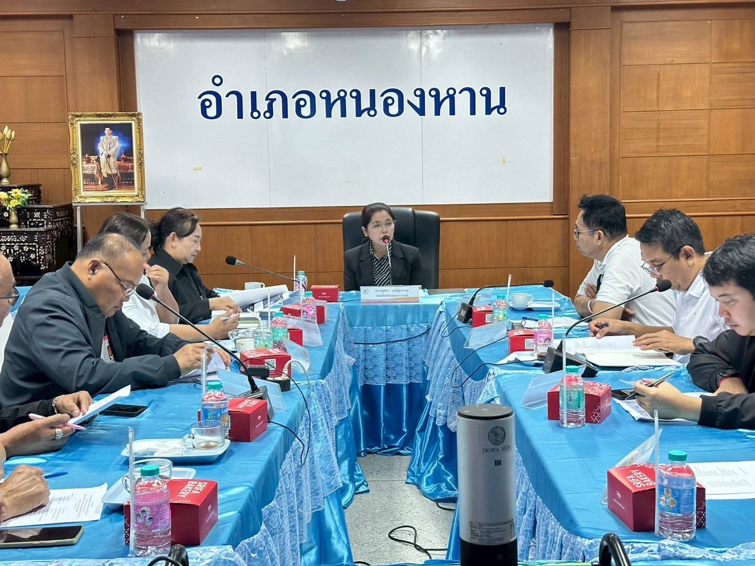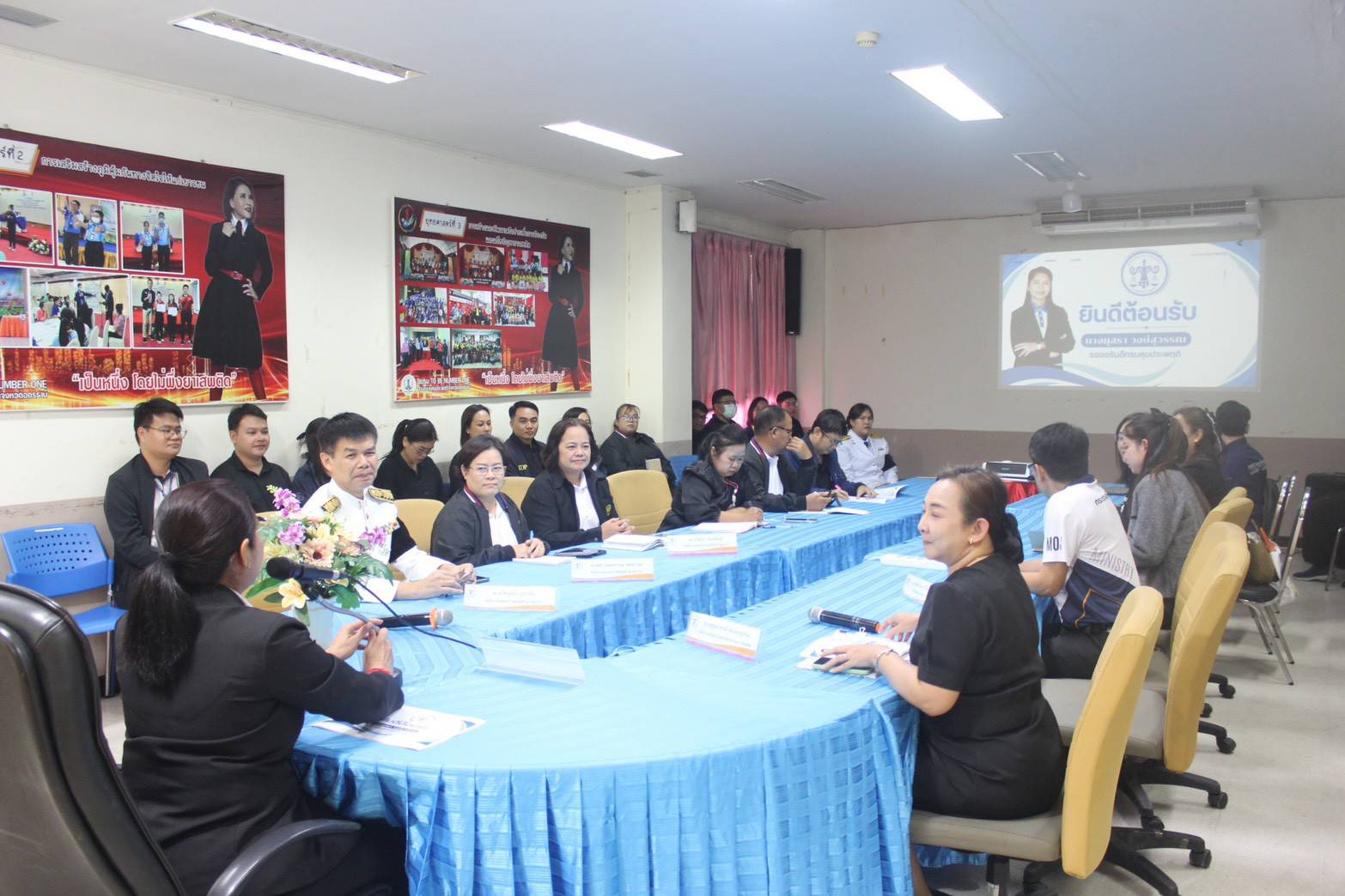 จากนั้นรองอธิบดีกรมคุมประพฤติ เป็นประธานการประชุม คณะกรรมการศูนย์คุมประพฤติภาคประชาชนอำเภอหนองหาน ครั้งที่ 1/2569 เพื่อรับฟังผลการดำเนินงานของศูนย์คุมประพฤติภาคประชาชนฯ การดำเนินกิจกรรมแก้ไขฟื้นฟู และการบูรณาการประสานความร่วมมือกับอำเภอหนองหานตามนโยบาย อุดรโมเดล ( 5 เสือ PULS) โดยมีนายธนชาต บริสุทธิ์ นายอำเภอหนองหาน หัวหน้าส่วนราชการในอำเภอหนองหาน อาสาสมัครคุมประพฤติ และเจ้าหน้าที่ฯ เข้าร่วมประชุมในครั้งนี้ ณ ห้องประชุมชั้น 2 ที่ว่าการอำเภอหนองหาน อำเภอหนองหาน จังหวัดอุดรธานี