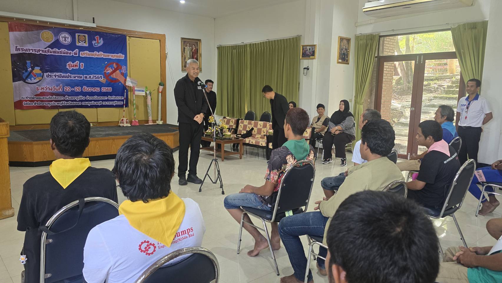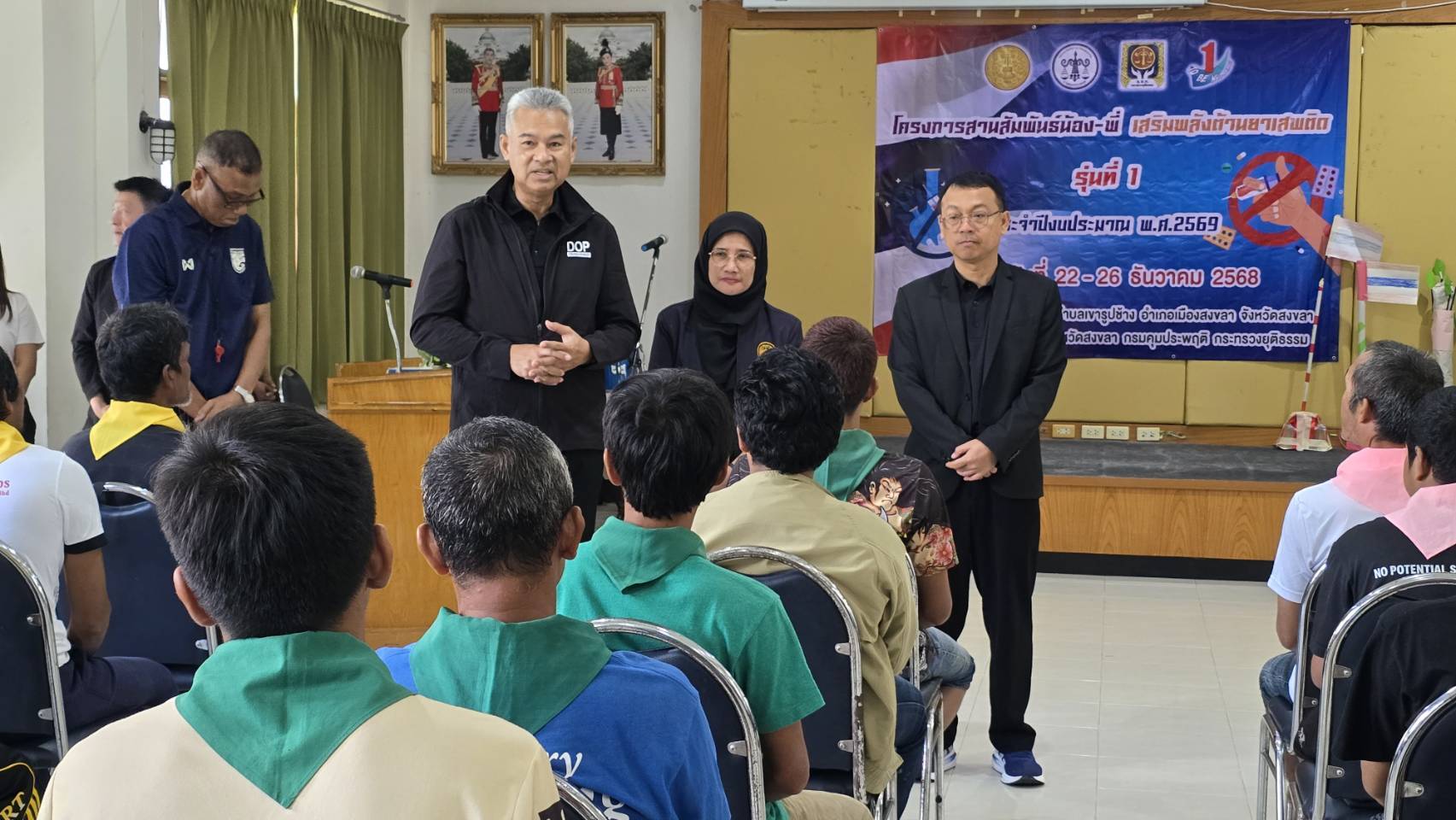 ต่อจากนั้น อธิบดีกรมคุมประพฤติ เดินทางไปเยี่ยมให้กำลังใจผู้ถูกคุมความประพฤติในคดียาเสพติด จำนวน 40 คน ที่เข้าร่วมโครงการ "ค่ายสานสัมพันธ์น้องพี่" (ค่าย 5 วัน) ซึ่งจัดขึ้นระหว่างวันที่ 22 - 26 ธันวาคม 2569 ณ สวนสัตว์สงขลา เพื่อปรับเปลี่ยนพฤติกรรมให้ผู้เข้าร่วมโครงการสามารถกลับไปใช้ชีวิตในสังคมได้อย่างมีคุณภาพ ลดการกระทำผิดซ้ำ สร้างประโยชน์ให้แก่ครอบครัวและชุมชน ช่วยแก้ไขปัญหายาเสพติดอย่างยั่งยืน