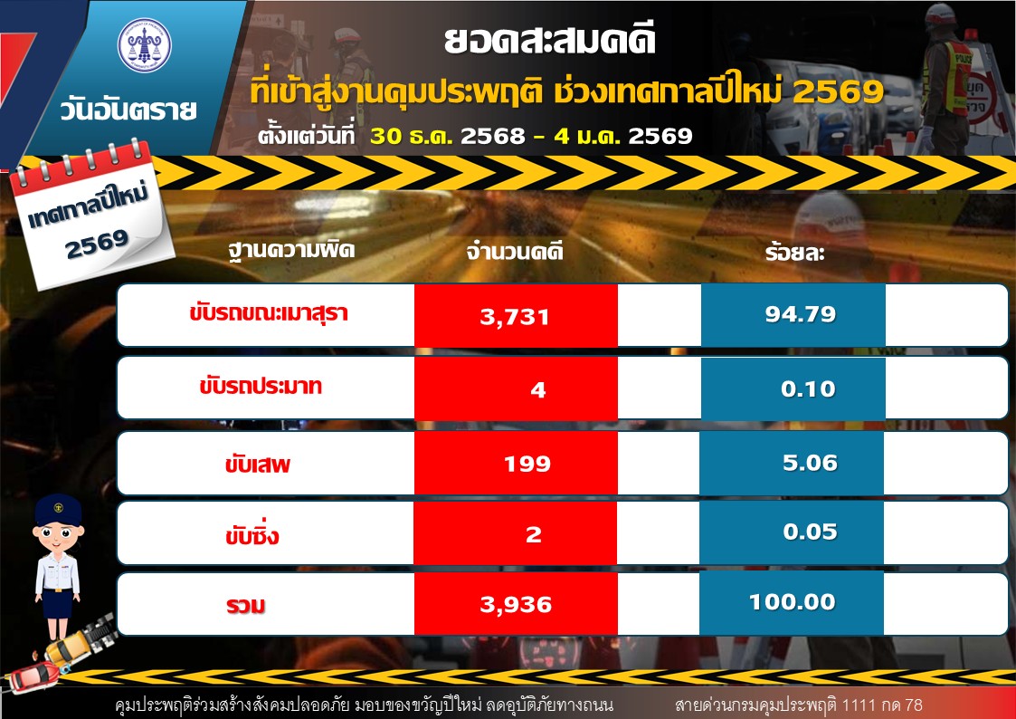 โดยเป็น ขับรถขณะเมาสุรา จำนวน 774 คดี คิดเป็นร้อยละ 95.20 คดีขับเสพ จำนวน 39 คดี คิดเป็นร้อยละ 4.80