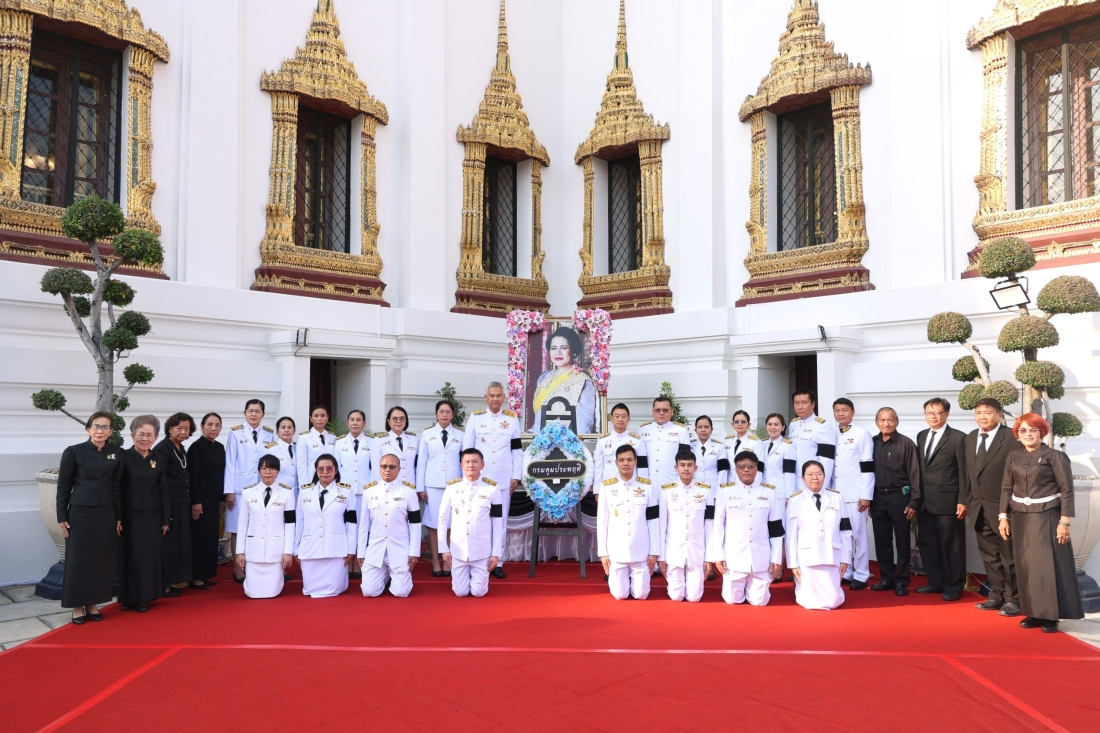 วันนี้ (12 กุมภาพันธ์ 2569) ร้อยตำรวจเอก ปิยะ รักสกุล อธิบดีกรมคุมประพฤติ พร้อมด้วย นายสิทธิ สุธีวงศ์ รองอธิบดีกรมคุมประพฤติ นางนุสรา วงษ์สุวรรณ รองอธิบดีกรมคุมประพฤติ นำคณะผู้บริหารกรมคุมประพฤติ และอาสาสมัครคุมประพฤติ เข้าวางพวงมาลาถวายสักการะเบื้องหน้าพระฉายาลักษณ์ สมเด็จพระนางเจ้าสิริกิติ์ พระบรมราชินีนาถ พระบรมราชชนนีพันปีหลวง พร้อมเข้ากราบถวายบังคมพระบรมศพ เพื่อแสดงความอาลัยและน้อมรำลึกถึงพระมหากรุณาธิคุณอย่างหาที่สุดมิได้ ณ พระที่นั่งดุสิตมหาปราสาท ในพระบรมมหาราชวัง