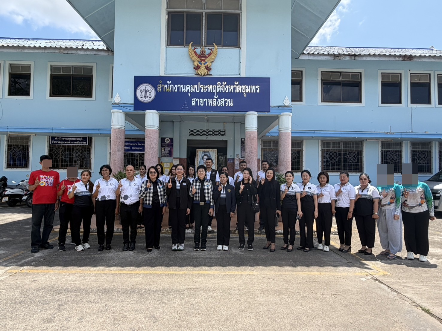 วันนี้ (12 มีนาคม 2569) นางนุสรา วงษ์สุวรรณ รองอธิบดีกรมคุมประพฤติ พร้อมด้วย นางวราภรณ์ เปล่งแสง หัวหน้าผู้ตรวจราชการกรมคุมประพฤติ นางสาวจิราพร บุญชูวงศ์ ผู้เชี่ยวชาญเฉพาะด้านการควบคุมและสอดส่อง และคณะ ลงพื้นที่จังหวัดชุมพรเพื่อตรวจเยี่ยมการดำเนินงานของสำนักงานคุมประพฤติจังหวัดชุมพร สาขาหลังสวน พร้อมให้กำลังใจเจ้าหน้าที่ผู้ปฏิบัติงานในพื้นที่ และมอบแนวทางการดำเนินงานเพื่อยกระดับประสิทธิภาพงานคุมประพฤติให้สอดคล้องกับนโยบายของกรมคุมประพฤติ ประจำปีงบประมาณ พ.ศ. 2569 โดยมี นางสาวจิรนัน พรามกุล ผู้อำนวยการสำนักงานคุมประพฤติจังหวัดชุมพร และนายฮาซัน มาหิเละ ผู้อำนวยการสำนักงานคุมประพฤติจังหวัดชุมพร สาขาหลังสวน พร้อมเจ้าหน้าที่ให้การต้อนรับและร่วมรายงานผลการปฏิบัติงาน ณ สำนักงานคุมประพฤติจังหวัดชุมพร สาขาหลังสวน อำเภอหลังสวน จังหวัดชุมพร