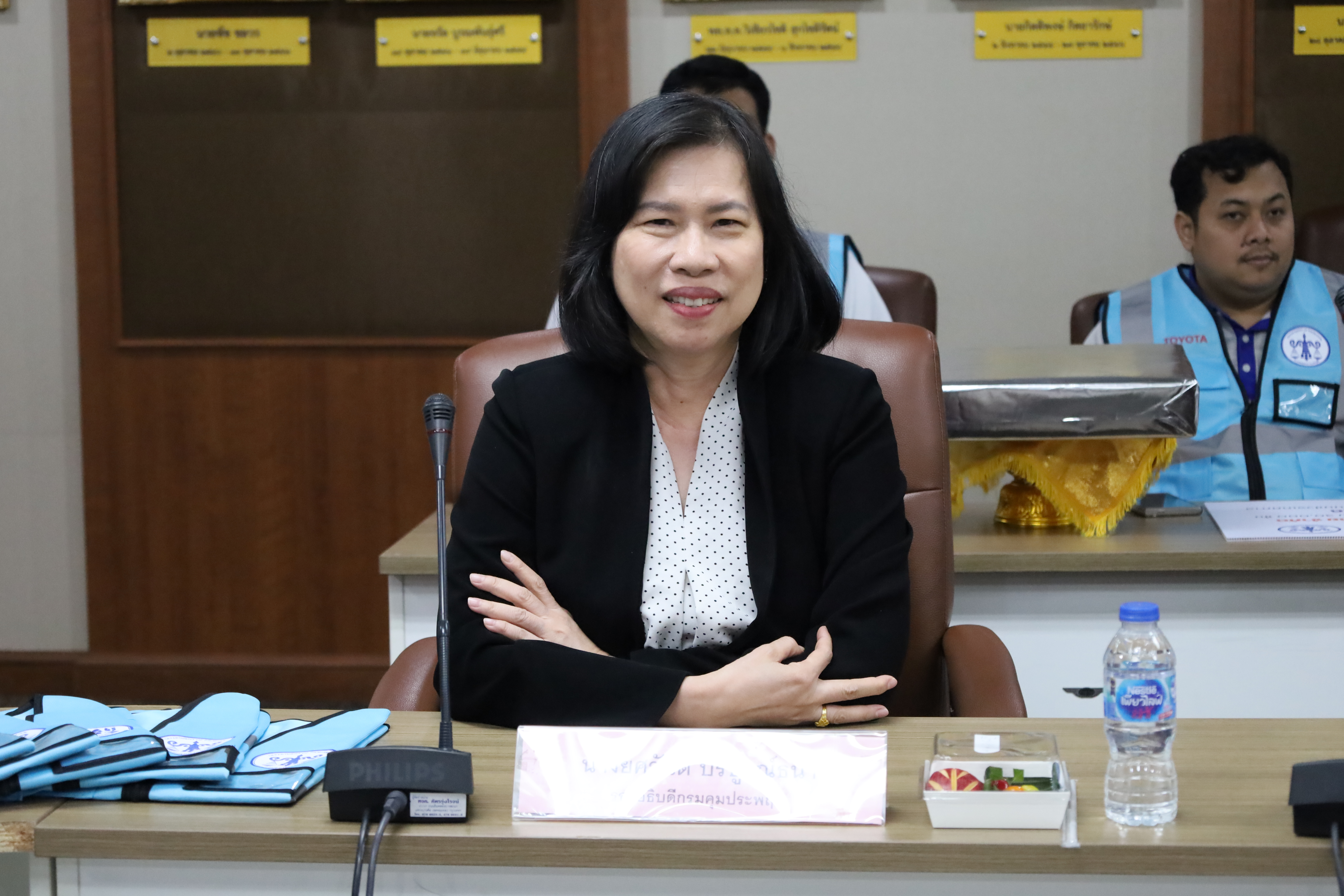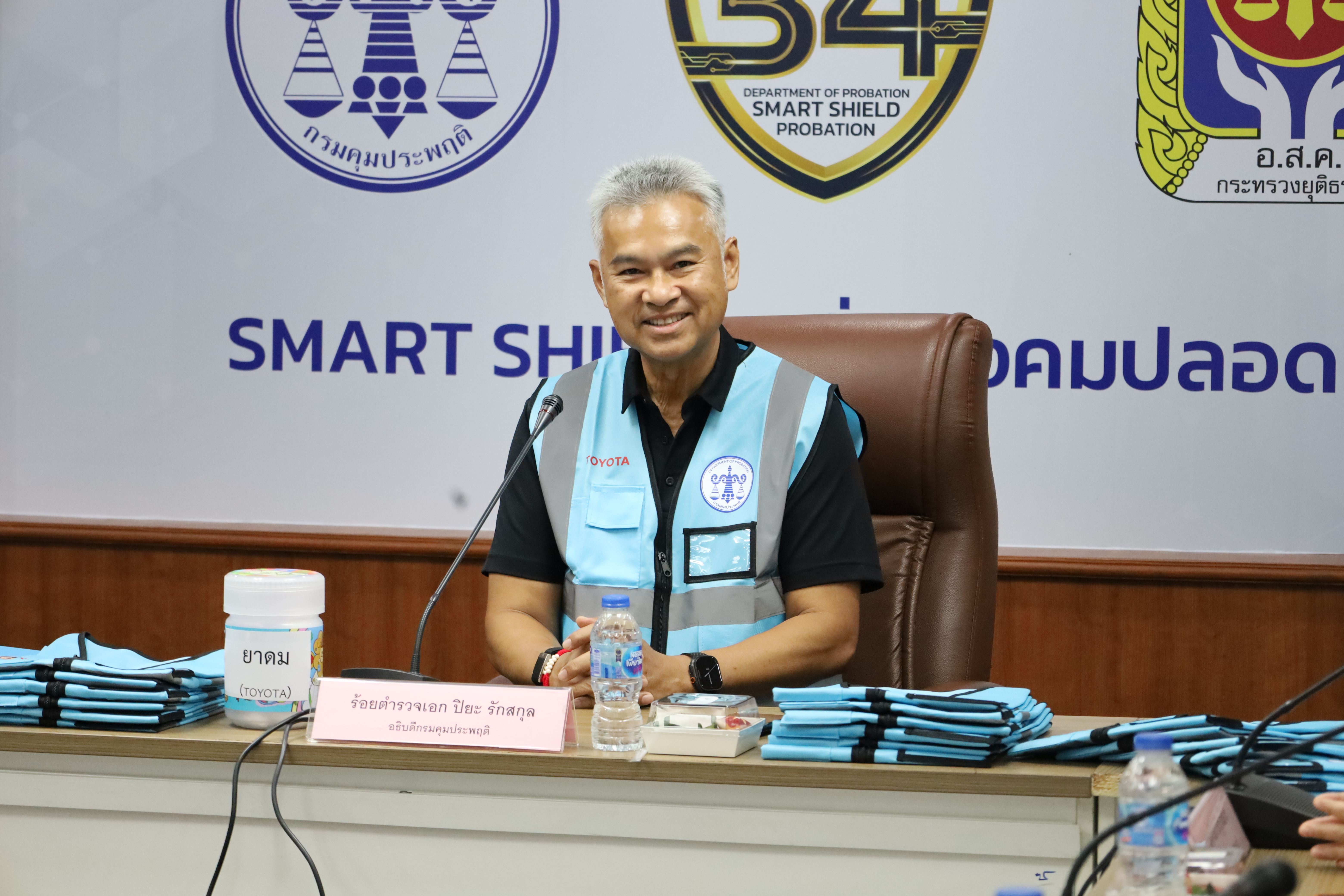 วันนี้ (2 เมษายน 2569) ร้อยตำรวจเอก ปิยะ รักสกุล อธิบดีกรมคุมประพฤติ พร้อมด้วย นางยศวันต์ บริบูรณ์ธนา รองอธิบดีกรมคุมประพฤติ รับมอบเสื้อกั๊กสะท้อนแสง จำนวน 500 ตัว และยาดม จำนวน 15,000 ชิ้น จาก บริษัท โตโยต้า มอเตอร์ ประเทศไทย จำกัด นำโดยนายนันทวัฒน์ ศรีวรัตน์อัชกุล ผู้ช่วยกรรมการผู้จัดการใหญ่ เพื่อสนับสนุนการรณรงค์ป้องกันและลดอุบัติเหตุทางถนนในช่วงเทศกาลสงกรานต์ พ.ศ. 2569 โดยมีคณะผู้บริหารกรมคุมประพฤติ และเจ้าหน้าที่ที่เกี่ยวข้องเข้าร่วม ณ ห้องประชุมกรมคุมประพฤติ ชั้น 4 อาคารราชบุรีดิเรกฤทธิ์ ศูนย์ราชการเฉลิมพระเกียรติฯ กรุงเทพมหานคร