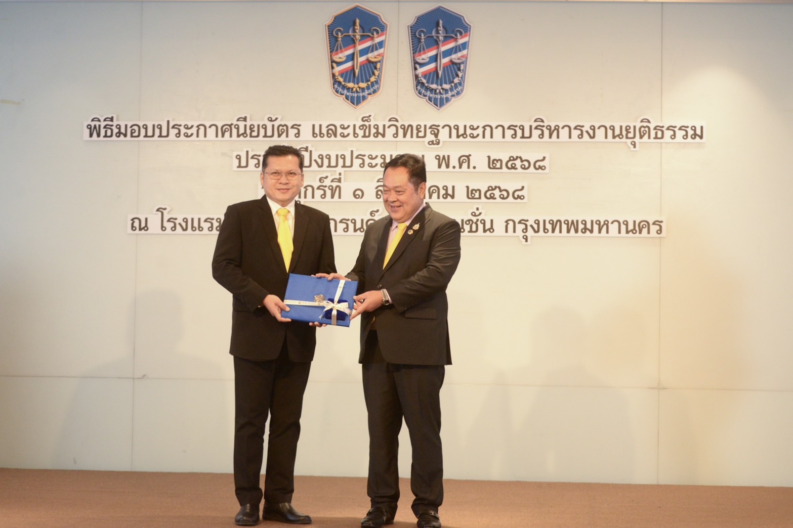 วันนี้ (1 สิงหาคม 2568) พันตำรวจเอก ทวี สอดส่อง รัฐมนตรีว่าการกระทรวงยุติธรรม เป็นประธานในพิธีมอบประกาศนียบัตร พร้อมเข็มวิทยฐานะการบริหารงานยุติธรรม ประจำปีงบประมาณ พ.ศ. 2568 ให้แก่ผู้ที่สำเร็จการฝึกอบรมหลักสูตรการบริหารงานยุติธรรมระดับสูง รุ่นที่ 16 (ยธส.16) และหลักสูตรการบริหารงานยุติธรรมระดับกลาง รุ่นที่ 20 (ยธก.20) รวมจำนวน 115 คน โดยมีนางนุสรา วงษ์สุวรรณ รองอธิบดีกรมคุมประพฤติร่วมเป็นเกียรติในพิธีดังกล่าว ณ โรงแรมมิราเคิล แกรนด์ คอนเวนชั่น กรุงเทพมหานคร โดยมีบุคลากรสังกัดกรมคุมประพฤติสำเร็จการฝึกอบรมหลักสูตรการบริหารงานยุติธรรมระดับสูง จำนวน 1 ราย คือ นายเจษฎา พุ่มจันทร์ ผู้อำนวยการกองพัฒนาการคุมประพฤติ และสำเร็จการฝึกอบรมหลักสูตรการบริหารงานยุติธรรมระดับกลาง จำนวน 2 ราย 1. นางสาวมิ่งขวัญ คุ้มวงศ์ ผู้อำนวยการสำนักงานคุมประพฤติชัยนาท 2. นางสาวสุรีย์พร ศรีสุวรรณ ผู้อำนวยการสำนักงานคุมประพฤติจังหวัดเพชรบูรณ์ สาขาหล่มสัก