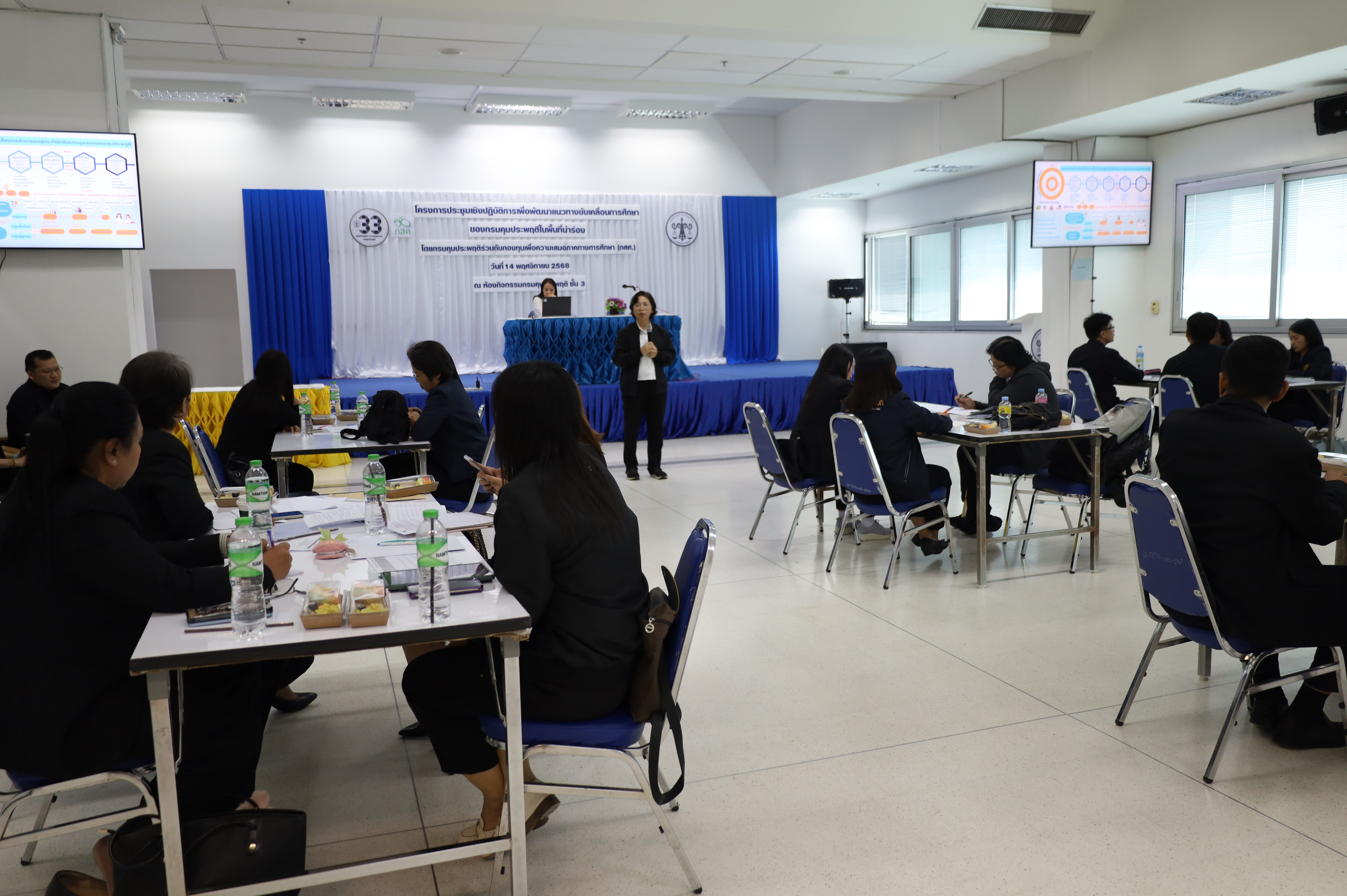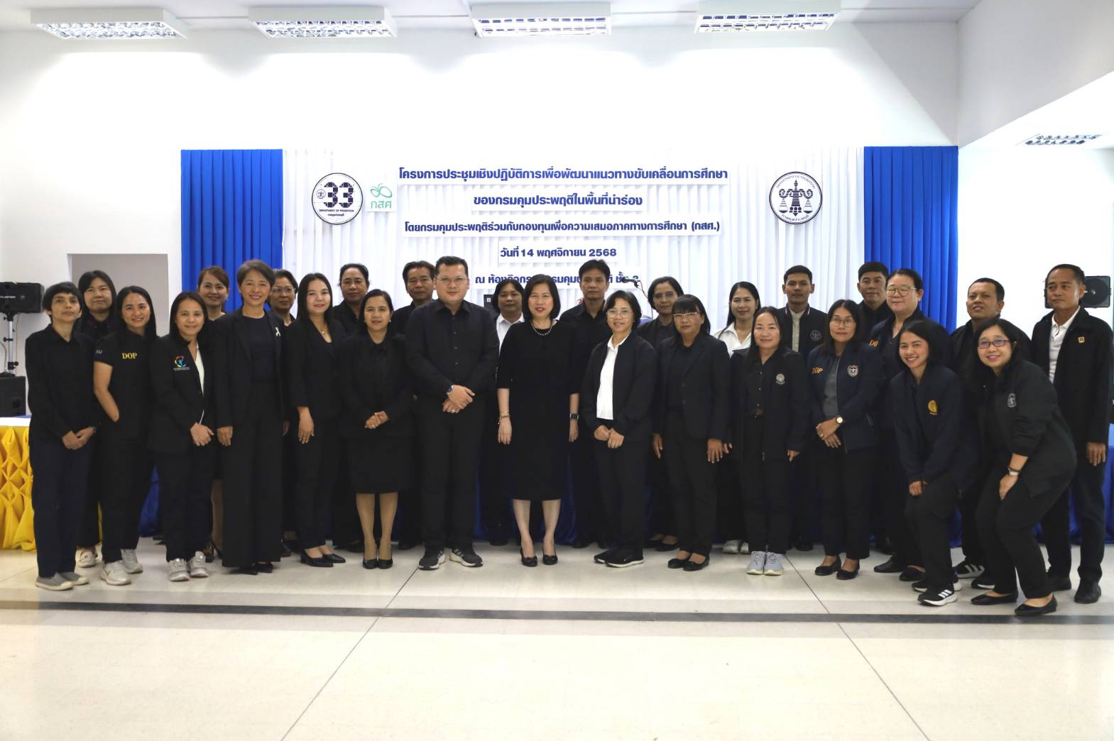 วันนี้ (14 พฤศจิกายน 2568) นางยศวันต์ บริบูรณ์ธนา รองอธิบดีกรมคุมประพฤติ เป็นประธานเปิด โครงการประชุมเชิงปฏิบัติการเพื่อพัฒนาแนวทางขับเคลื่อนการศึกษาของกรมคุมประพฤติในพื้นที่นำร่อง (ภาคกลาง) จัดโดย กองพัฒนาการคุมประพฤติ ร่วมกับ กองทุนเพื่อความเสมอภาคทางการศึกษา (กสศ.) โดยมี นายเจษฎา พุ่มจันทร์ ผู้อำนวยการกองพัฒนาการคุมประพฤติ พร้อมด้วยผู้อำนวยการสำนักงานคุมประพฤติ (ภาคกลาง) และพนักงานคุมประพฤติจากพื้นที่นำร่อง 6 แห่ง ได้แก่ สำนักงานคุมประพฤติจังหวัดพระนครศรีอยุธยา ลพบุรี ระยอง นครสวรรค์ ราชบุรี และกาญจนบุรี เข้าร่วม ณ ห้องกิจกรรมกรมคุมประพฤติ ชั้น 3 อาคารราชบุรีดิเรกฤทธิ์ กรุงเทพมหานคร