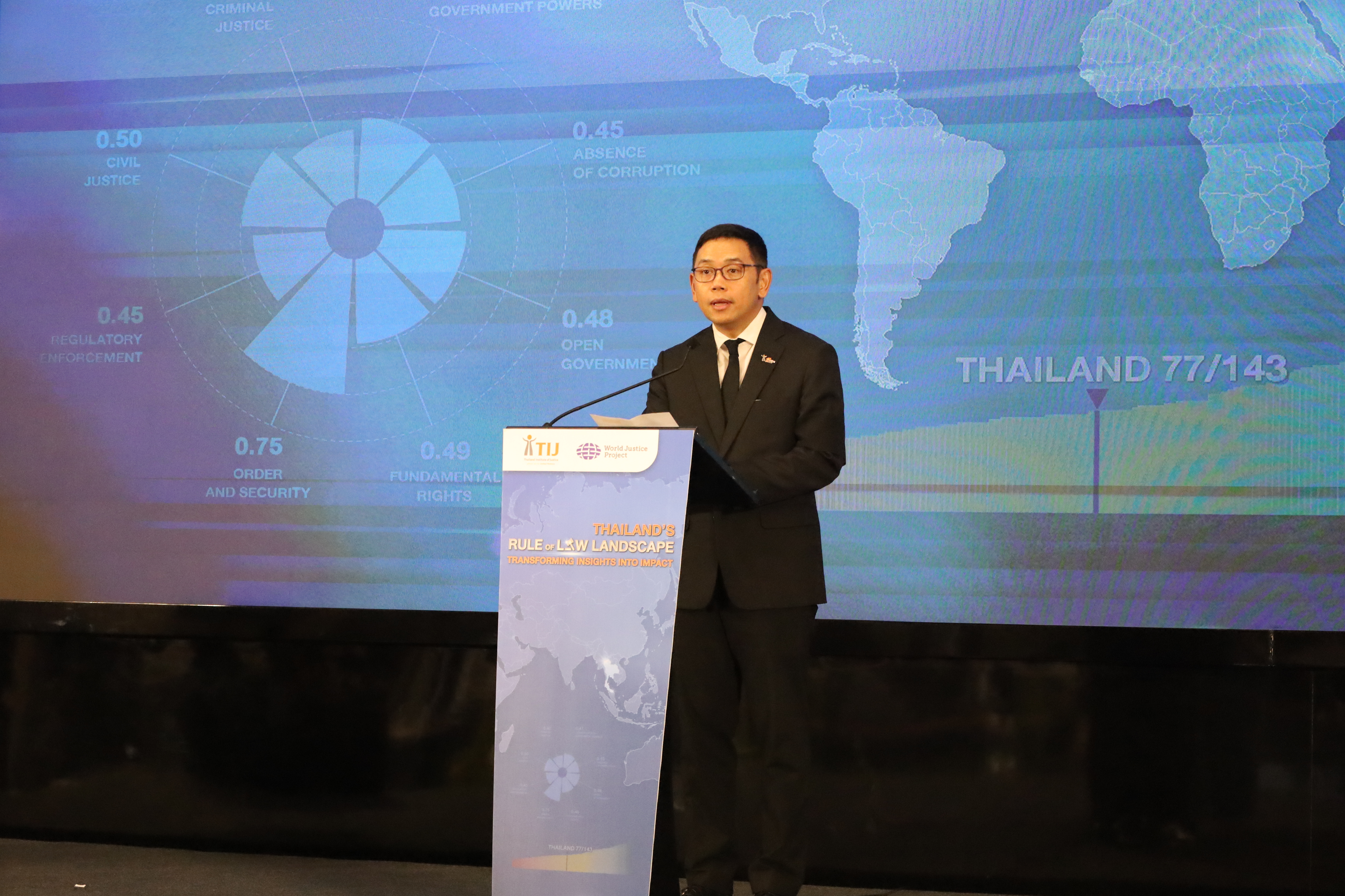 งานครั้งนี้จัดโดย สถาบันเพื่อการยุติธรรมแห่งประเทศไทย (TIJ) ร่วมกับ World Justice Project (WJP) มีวัตถุประสงค์เพื่อเผยแพร่ข้อค้นพบสำคัญจากรายงานและสร้างความเข้าใจเกี่ยวกับสถานการณ์ปัจจุบันของ หลักนิติธรรมไทย (Rule of Law) พร้อมทั้งเปิดเวทีระดับสูงเพื่อระดมความคิดเห็นจากผู้กำหนดนโยบายและผู้ทรงคุณวุฒิ เพื่อนำข้อมูลไปสู่การปฏิบัติจริง และขับเคลื่อนการปฏิรูปหลักนิติธรรมให้เป็นวาระแห่งชาติที่สอดคล้องกับบริบทของสังคมไทยและมาตรฐานสากล กิจกรรมภายในงานประกอบด้วย การปาฐกถาพิเศษ เรื่อง "The Invisible Infrastructure: Rule of Law as the Cornerstone of Thailand's Future" การนำเสนอผลการศึกษา "Decoding Thailand's Rule of Law: 2025 WJP Rule of Law Index" และการเสวนาเชิงยุทธศาสตร์ เรื่อง "Realizing the Rule of Law: Strategic Directions to Strengthen Institutional Trust and Effectiveness" เพื่อเสริมสร้างความเชื่อมั่นและประสิทธิผลของหน่วยงานในกระบวนการยุติธรรม