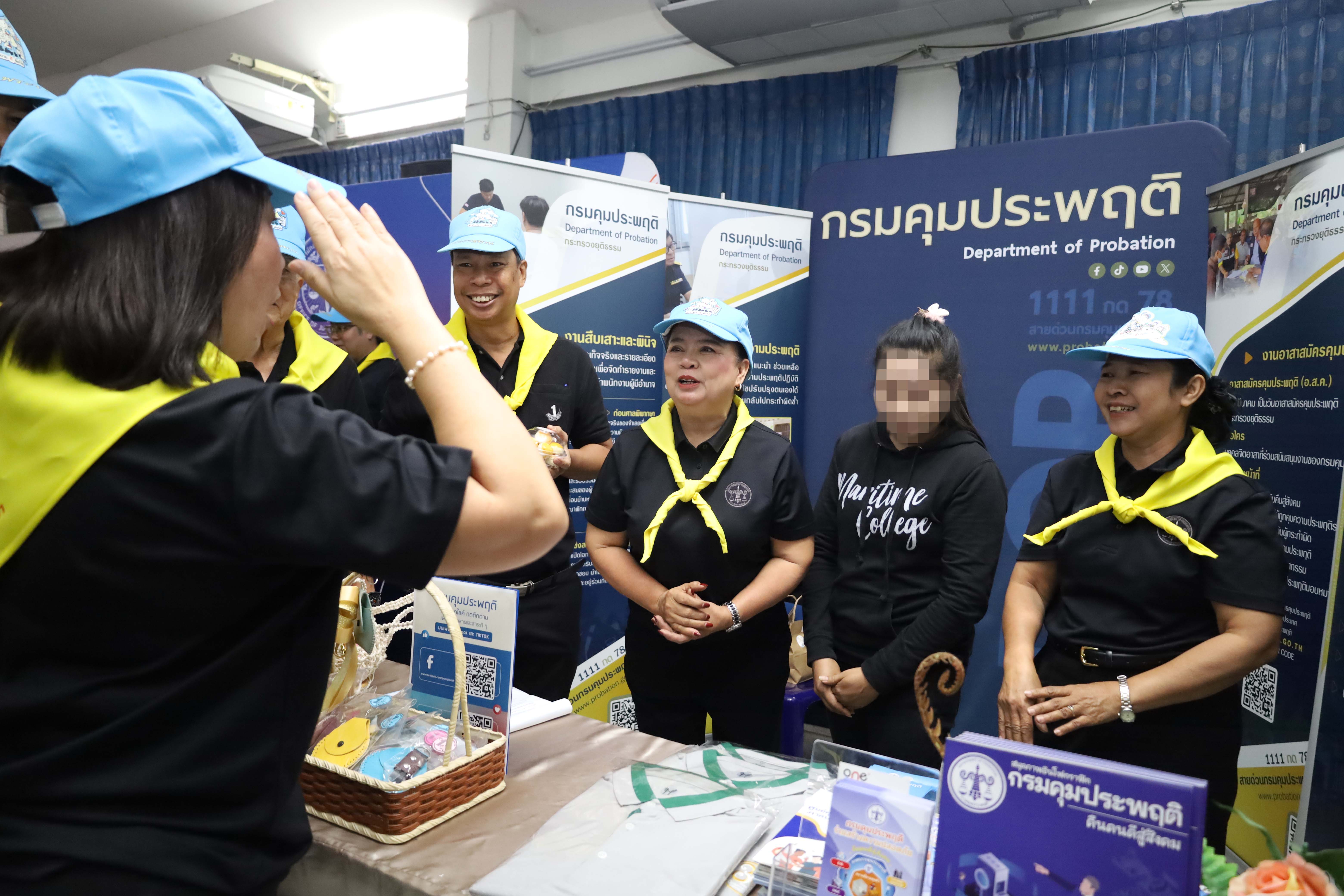 ต่อจากนั้น ปลัดกระทรวงยุติธรรม ได้เยี่ยมชมบูธนิทรรศการของกรมคุมประพฤติ โดยสำนักงานคุมประพฤติจังหวัดนครปฐม เพื่อรับรายงานความสำเร็จของกรมคุมประพฤติ ในการช่วยเหลือสงเคราะห์หนึ่งในผู้ก้าวพลาด สร้างโอกาสสนับสนุนทุนประกอบอาชีพขายขนมเปี๊ยะ พร้อมพูดคุยกับอาสาสมัครคุมประพฤติ เครือข่ายภาคประชาชนที่สำคัญของกระทรวงยุติธธรรม เพื่อให้นำความรู้ในวันนี้กลับไปถ่ายทอดให้พี่น้องประชาชน ช่วยติดอาวุธทางความรู้ด้านกฎหมายและกระบวนการยุติธรรมให้กับประชาชนต่อไป