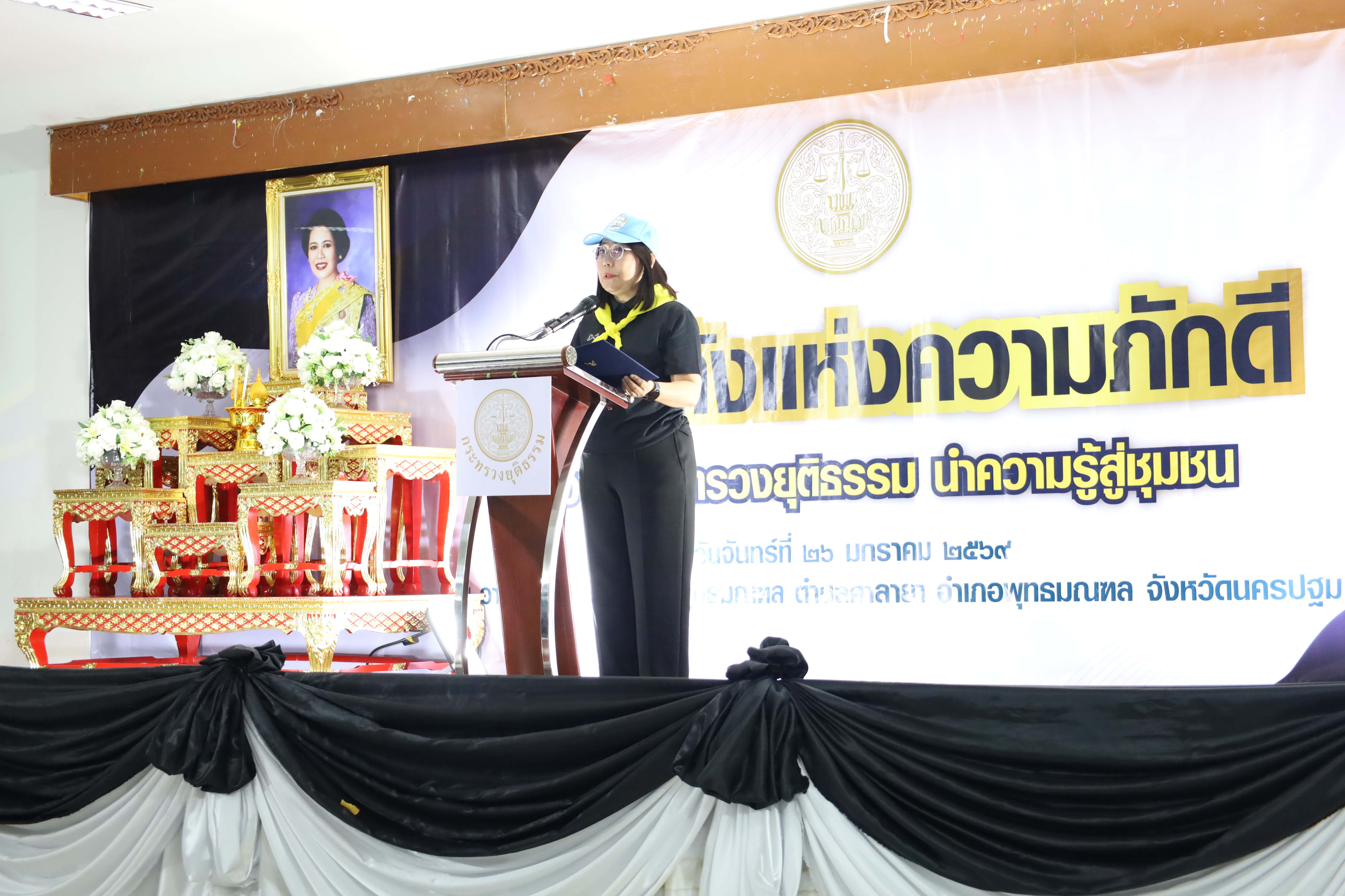 วันนี้ (26 มกราคม 2569) ร้อยตำรวจเอก ปิยะ รักสกุล อธิบดีกรมคุมประพฤติ ร่วมกิจกรรม "รวมพลังแห่งความภักดี : จิตอาสากระทรวงยุติธรรม นำความรู้สู่ชุมชน" โดยมีนางพงษ์สวาท นีละโยธิน ปลัดกระทรวงยุติธรรม เป็นประธานในพิธีเปิดกิจกรรม "รวมพลังแห่งความภักดี : จิตอาสากระทรวงยุติธรรม นำความรู้สู่ชุมชน" โดยมีคณะผู้บริหารกระทรวงยุติธรรม พร้อมด้วยผู้แทนหน่วยงานในสังกัดกระทรวงยุติธรรม เครือข่ายภาคประชาชน และผู้ที่เกี่ยวข้อง เข้าร่วมฯ ณ อาคารหอประชุมอำเภอพุทธมณฑล อำเภอพุทธมณฑล จังหวัดนครปฐม